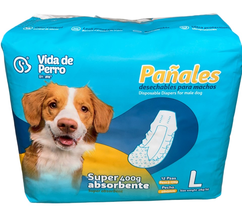 Pañales desechables grandes para machos (SAP) 400g, 12pzas, Cintura 40x52cm, peso 5-17kg.