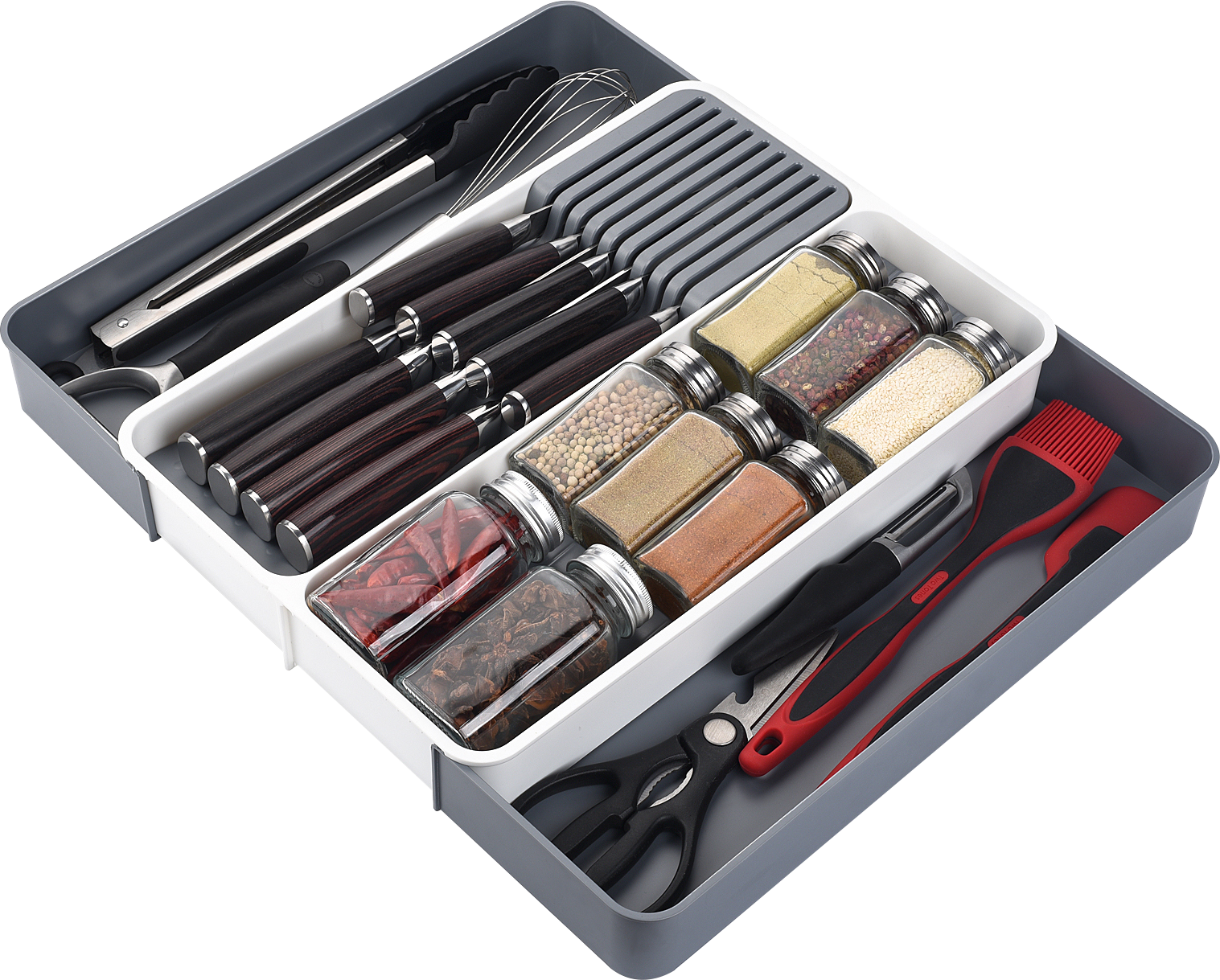 EXPANDABLE KNIFE DRAWER ORGANIZER TRAY