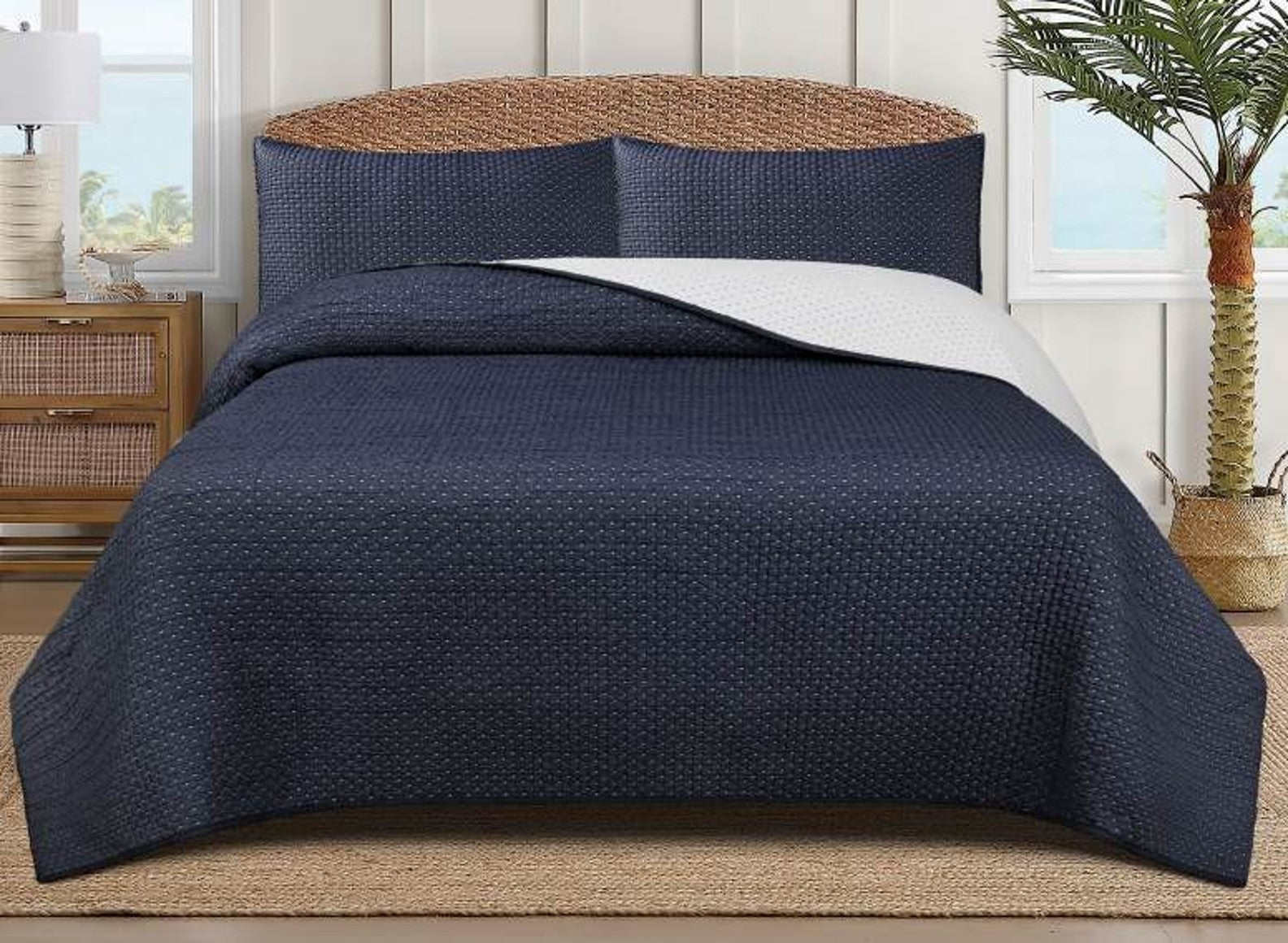 JUEGO DE CUBRECAMA FULL/ QUEEN 90x90X2x20x30/ AZUL MARINO