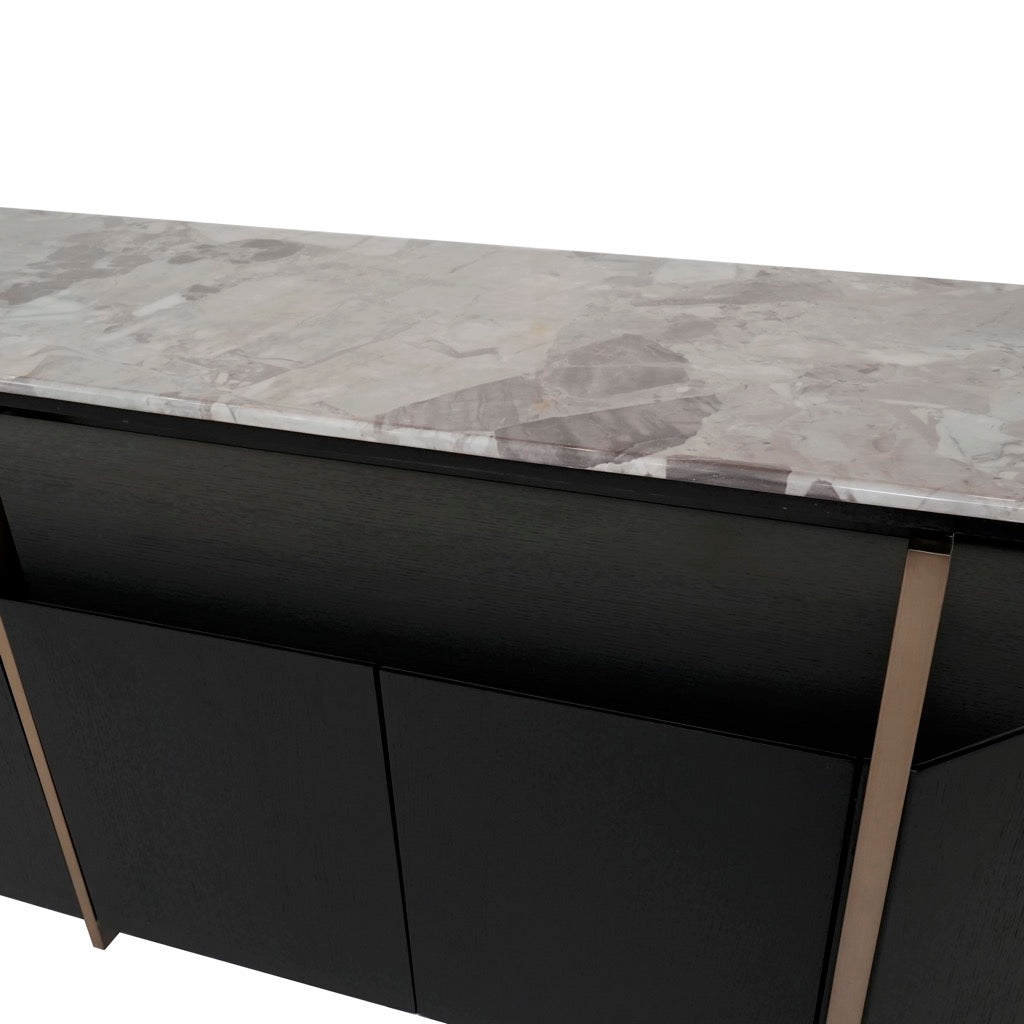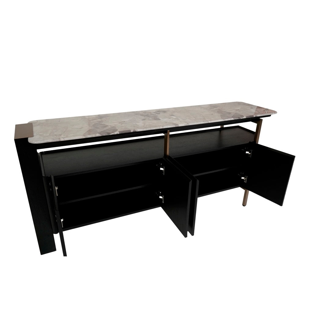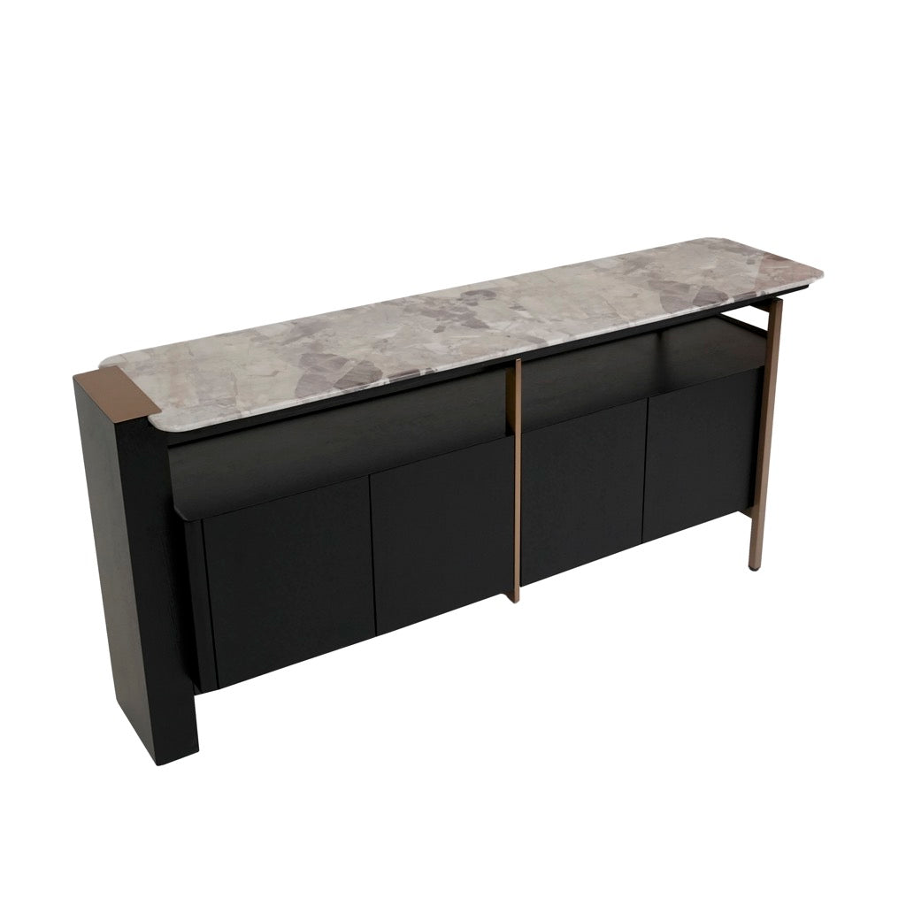 APARADOR, Blanco con gris marmoleado y base Negro+Bronce 180x45x80cm