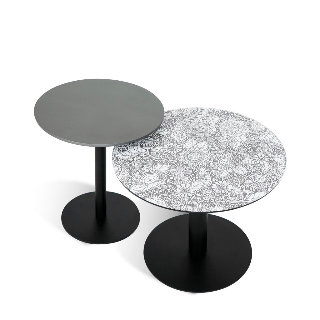 Juego de 3 Mesita, A: TOP Blanco marmoleado + Base Negra; B:TOP Diseno Gris + Base Negra; C:TOP Grey + Base Negra