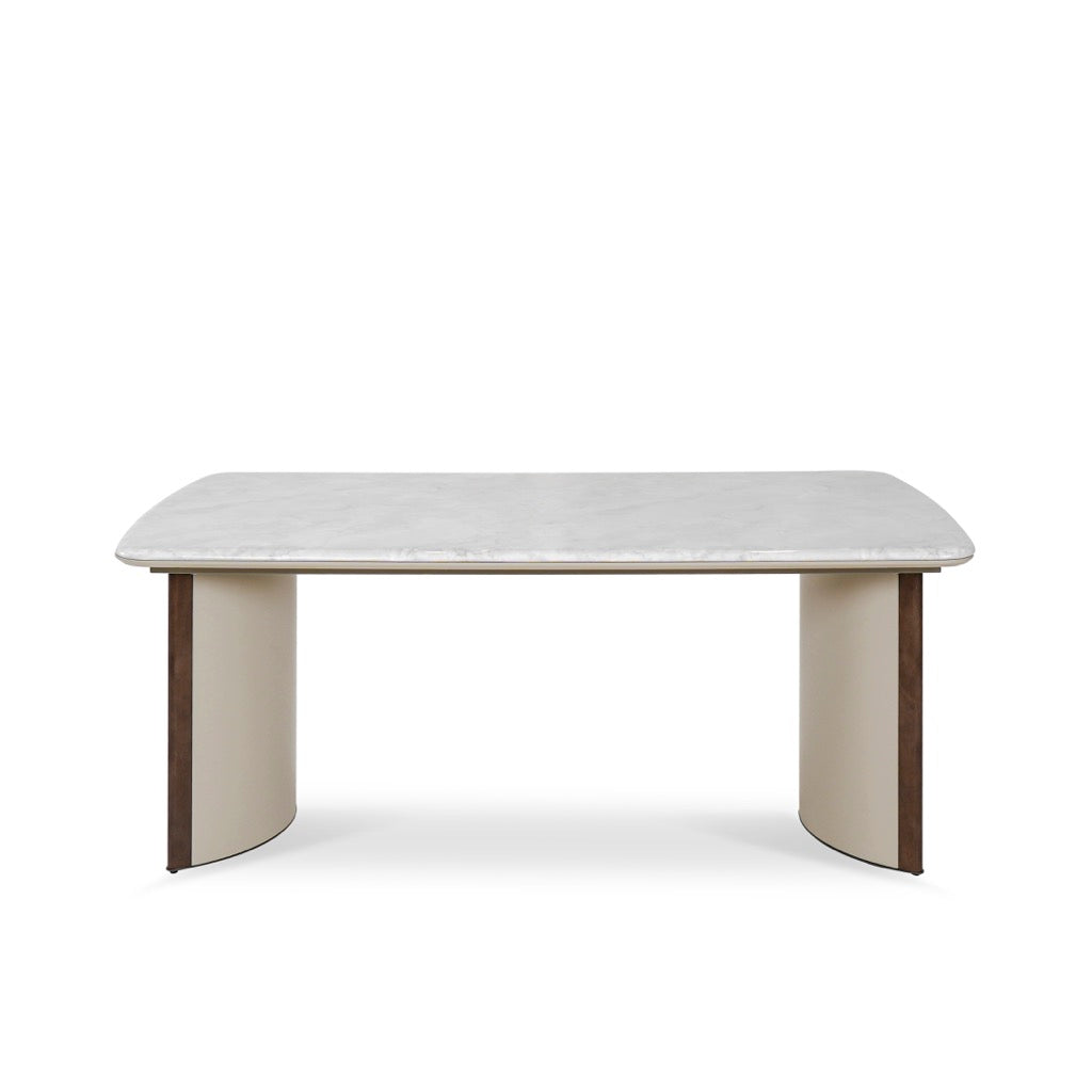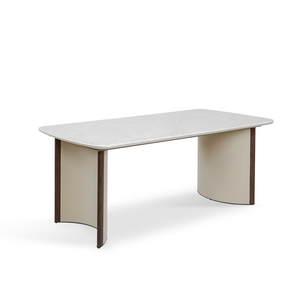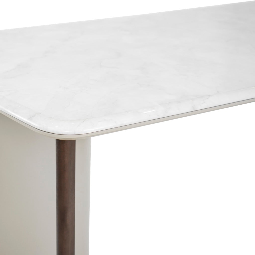 MESA DE COMEDOR RECTANGULAR, Blanco marmoleado con base beige + marron 160x90x75.5c