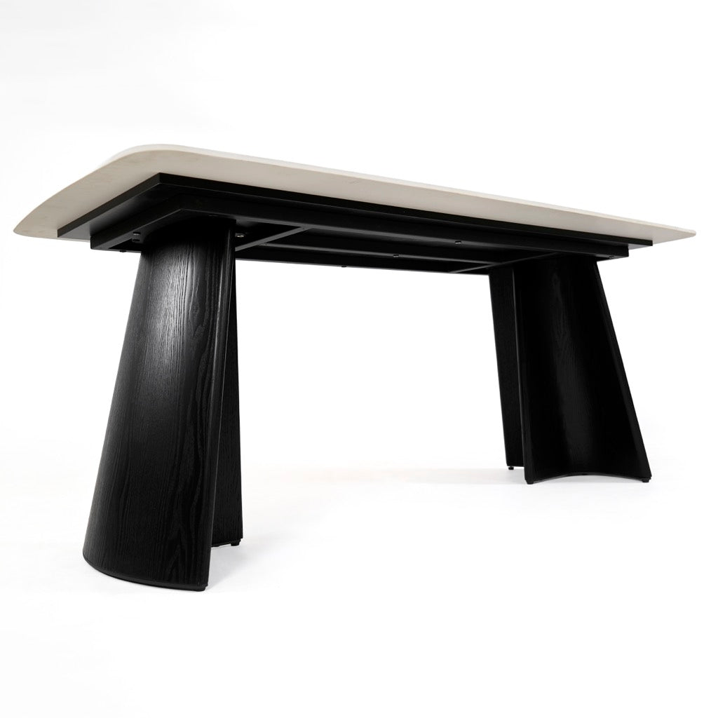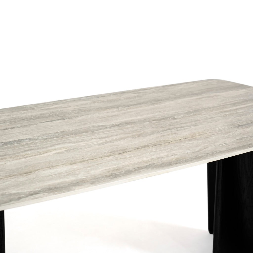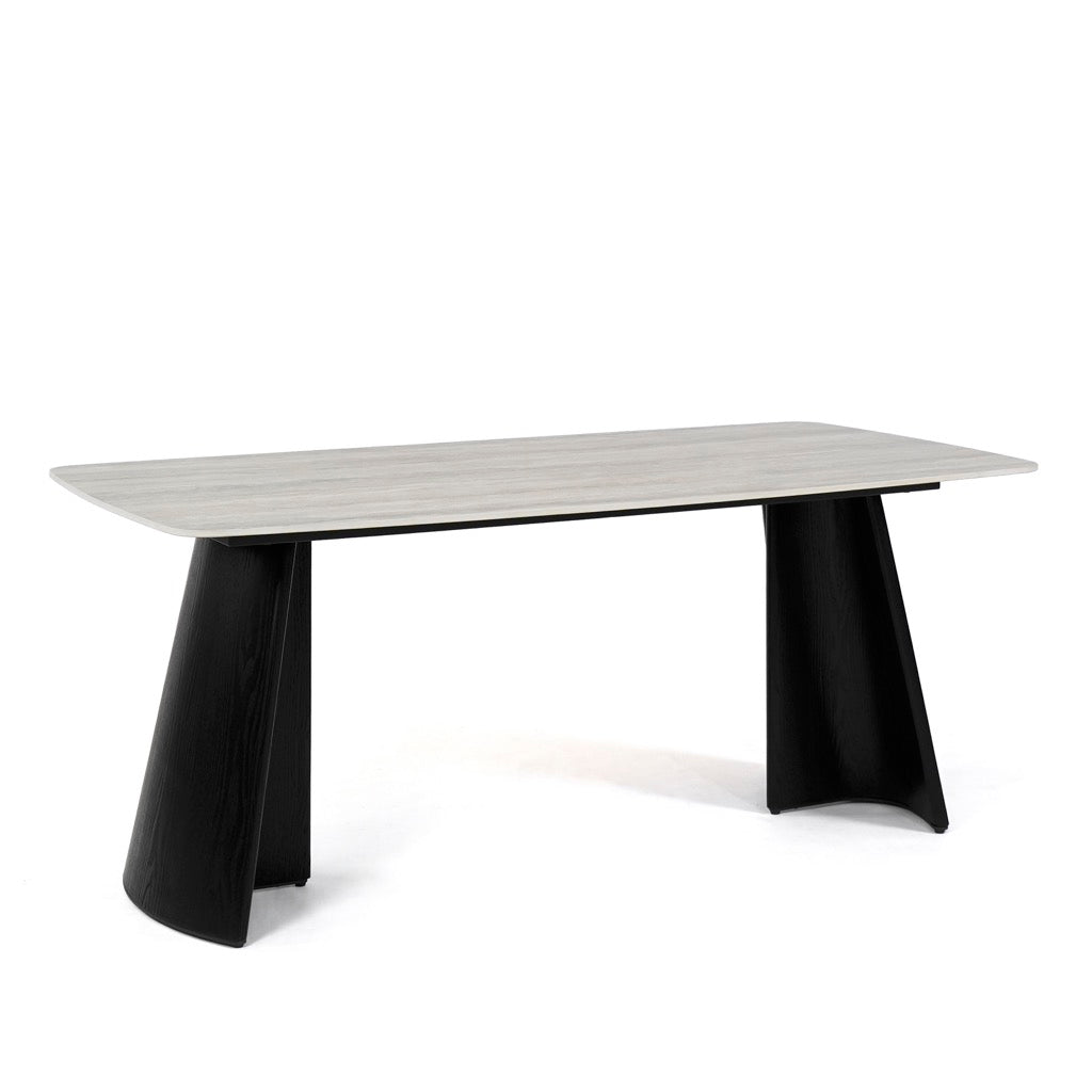 MESA DE COMEDOR RECTANGULAR, gris con base negra. 180x90x76cm