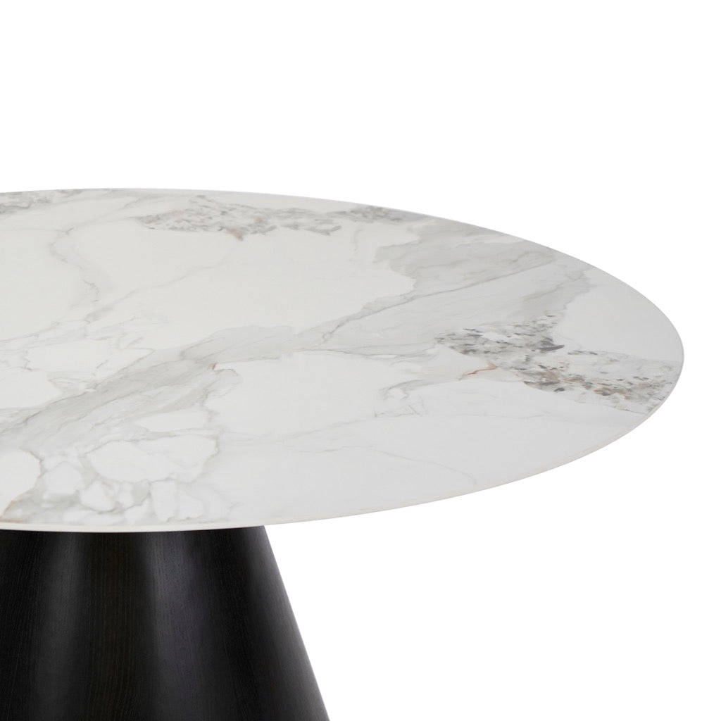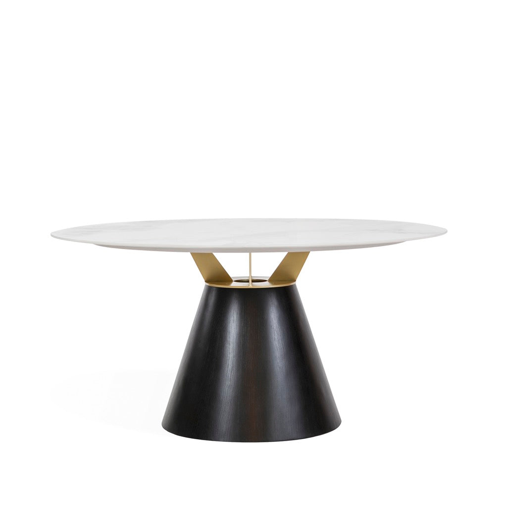 MESA DE COMEDOR REDONDA, Blanco marmoleado con base dorada + bronce 150*74.6cm