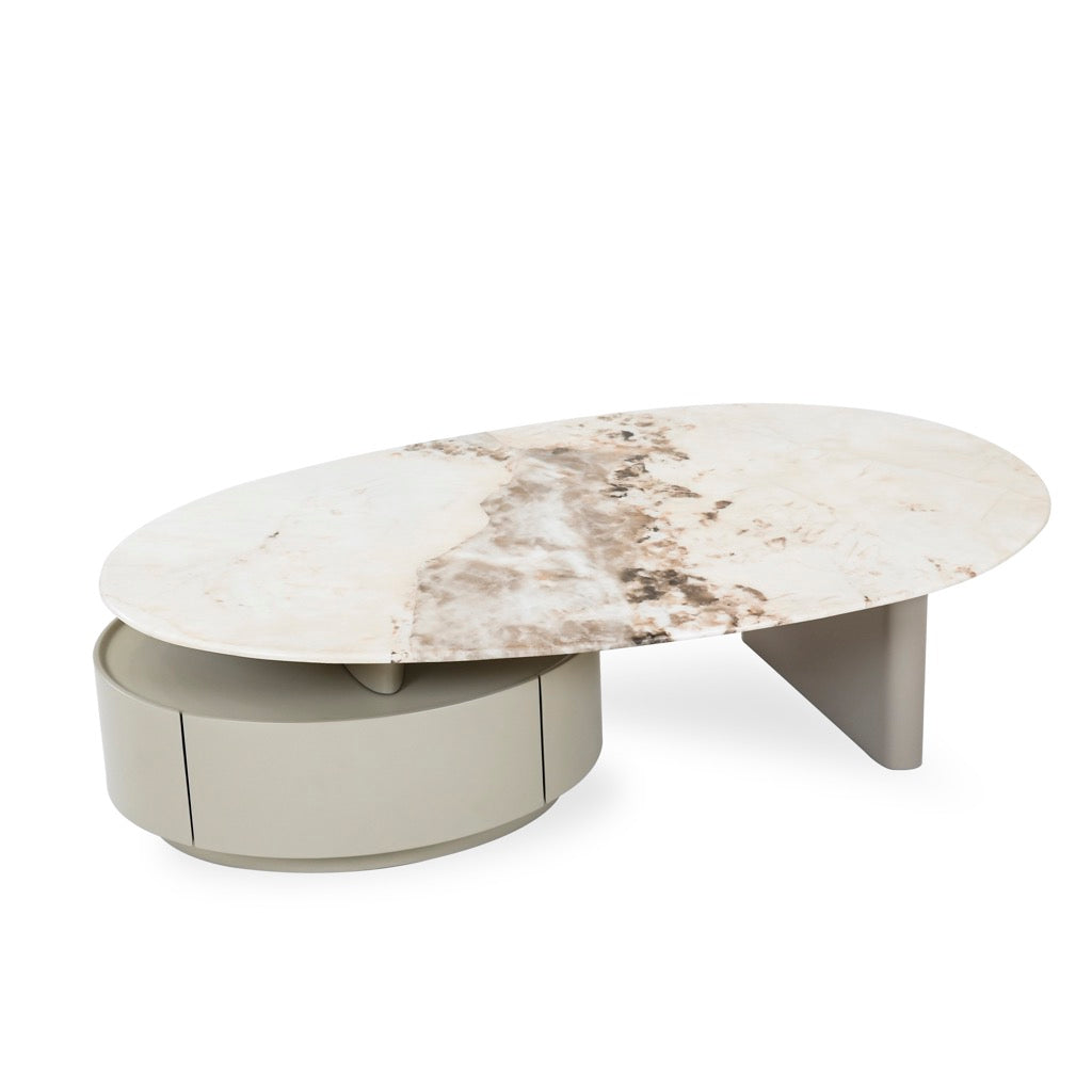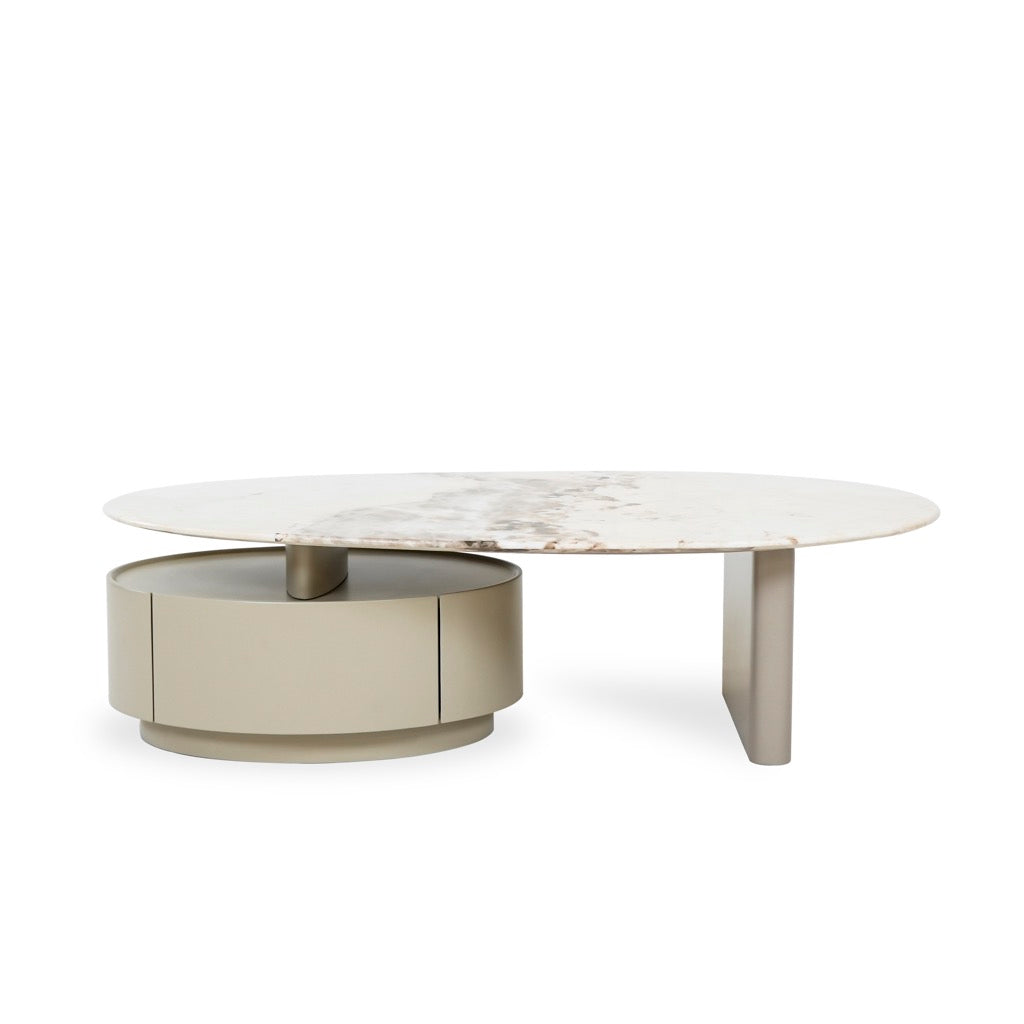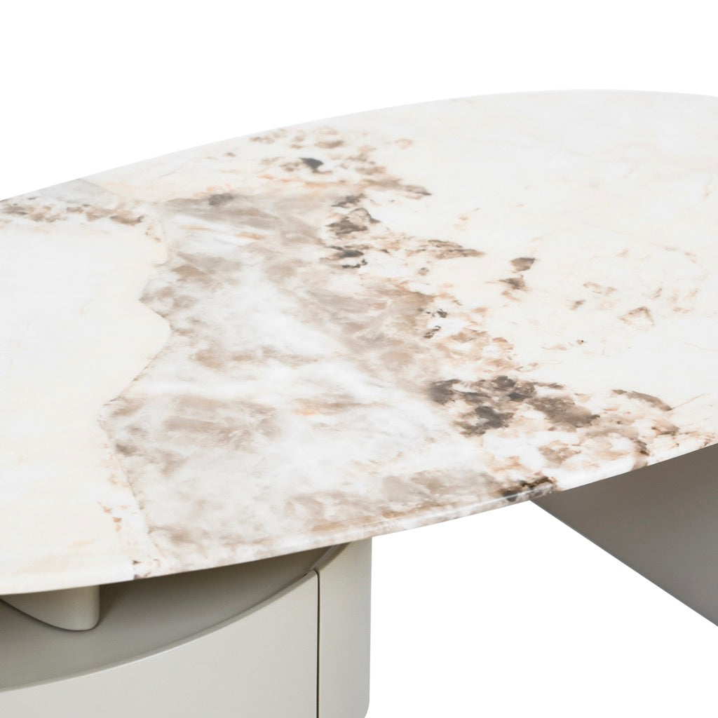 Mesita de Centro, Blanco con beige marmoleado y base Khaki 140x75.5x38.7cm