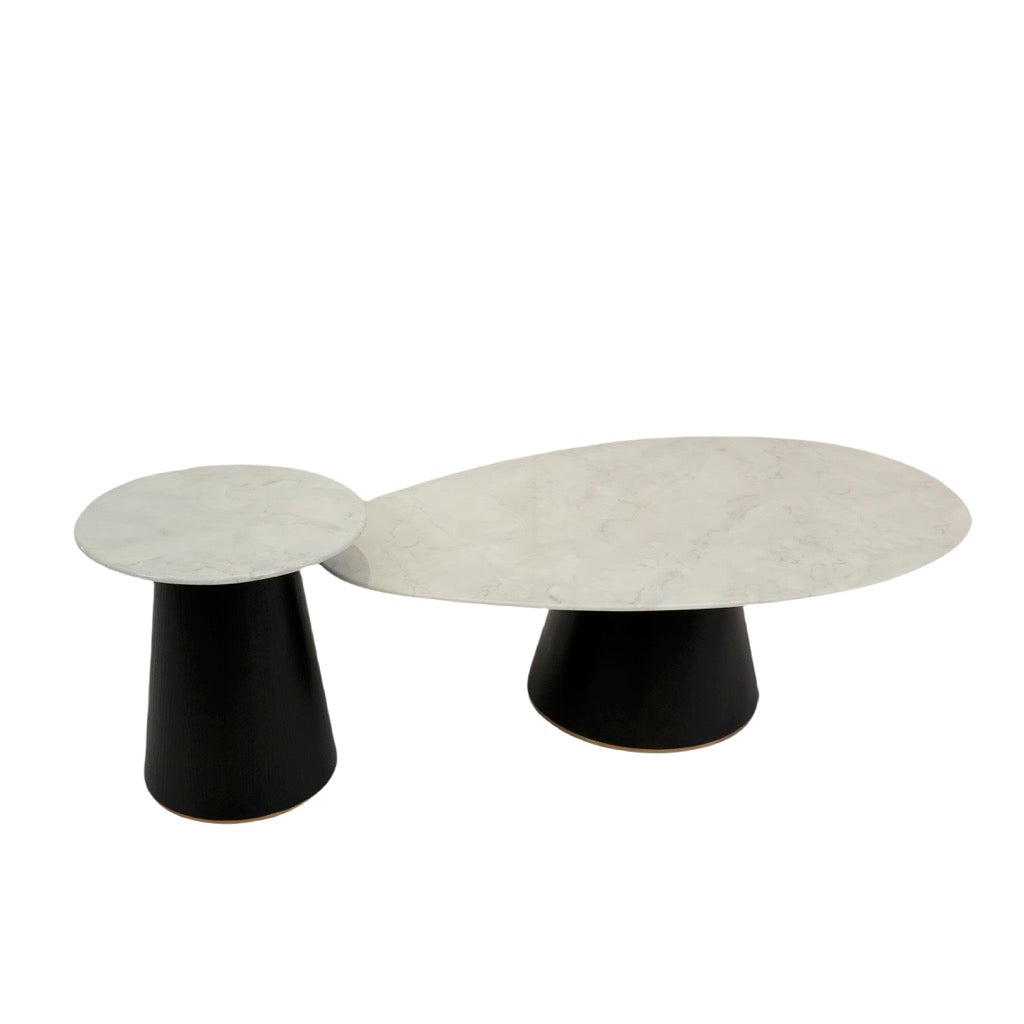 Mesita de Centro, Top blanco con marmoleado gris claro + base color negro 13.5